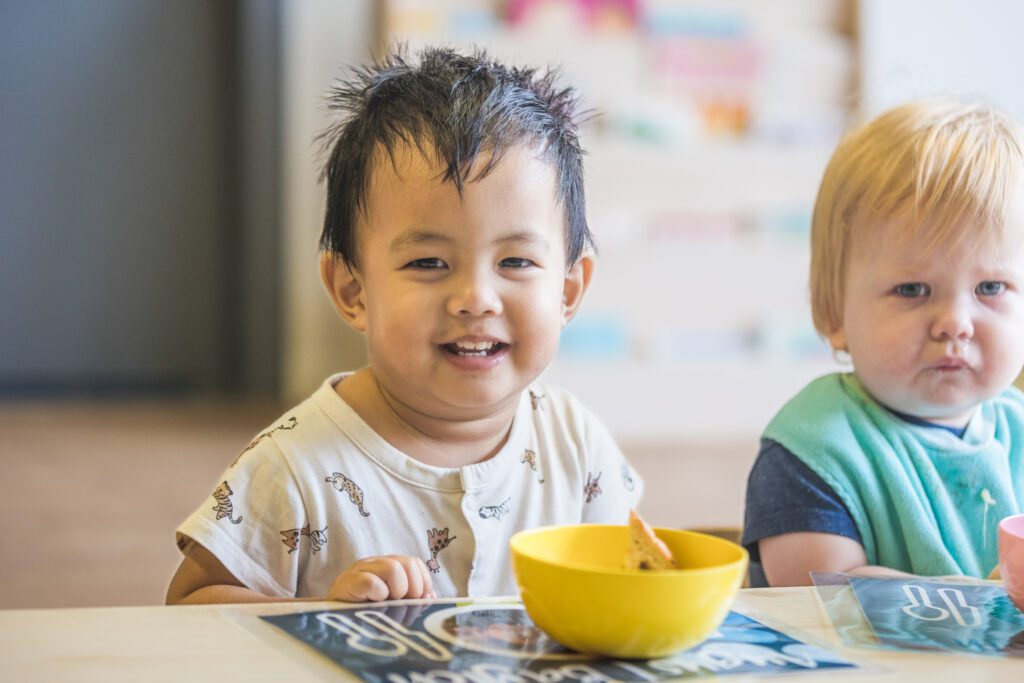 It’s 11:30am on a chilly Tuesday, and the toddler room is buzzing. Children are washing their hands, finding their seats, and chatting about what’s for lunch. Over in the kitchen, today’s meal—minestrone soup with cheesy garlic bread—is being served with care, and one child proudly exclaims, “I helped stir that!”